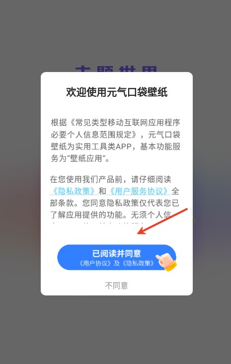 1、喜歡更換手機(jī)壁紙的朋友,可以下載安裝元氣口袋壁紙后進(jìn)入軟件,點擊同意然后進(jìn)入到首頁之中;