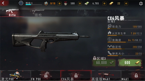 攻擊力數(shù)值為505,火災(zāi)發(fā)生率是12.5,準(zhǔn)確度達(dá)到68.5%,穩(wěn)定性為250,彈夾容量為33發(fā),解鎖條件為消耗60000現(xiàn)金與600金條。