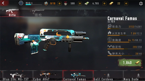 攻擊力數(shù)值為14381,火災(zāi)發(fā)生概率是12.5,精準(zhǔn)度達(dá)到68.5%,穩(wěn)定性能為250,彈匣容量為46,解鎖該物品需要消耗1840金條。
