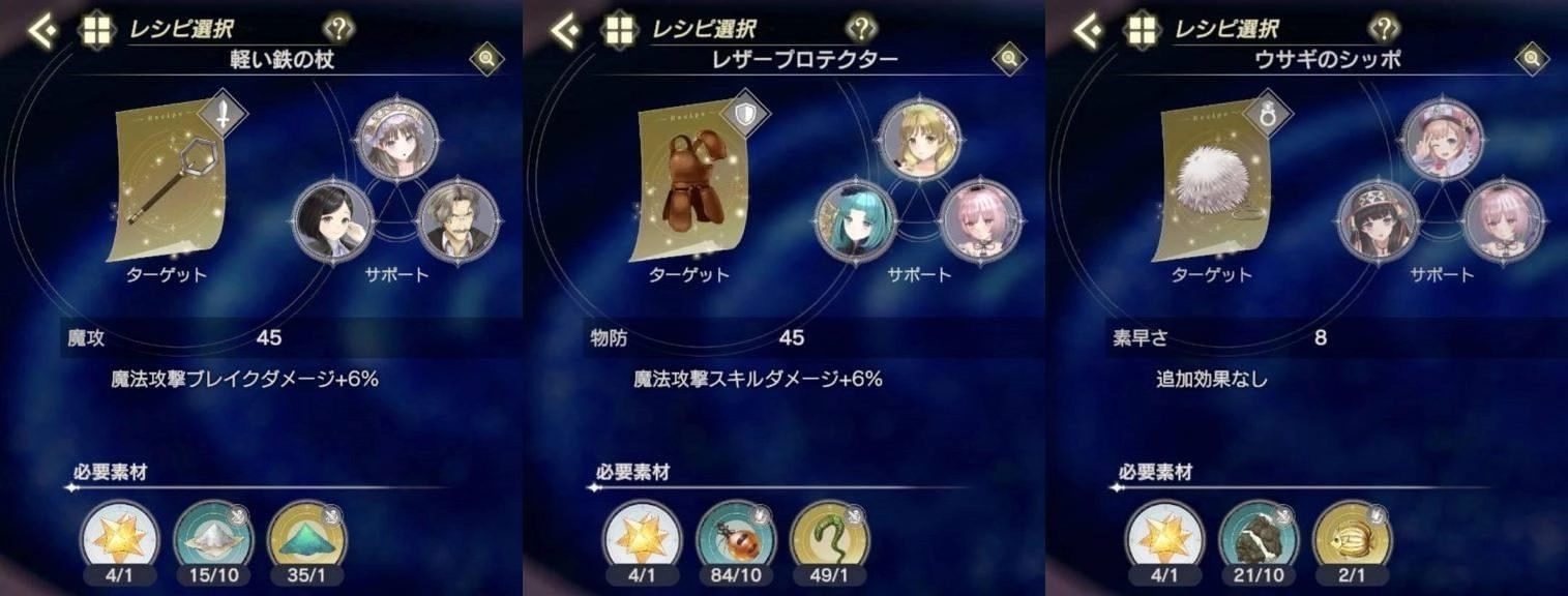 另外三章在中期會陸續(xù)解鎖攻擊角色裝備的煉金配方,屆時就可以著手制作攻擊角色的裝備了。