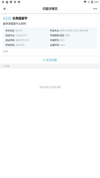 留學(xué)快問app是一個集信息服務(wù)與社群功能于一體的留學(xué)服務(wù)軟件,這款軟件里面的留學(xué)信息都是很真實很全面的,讓申請留學(xué)的用戶們可以全面了解情況,從中獲取更多的留學(xué)經(jīng)驗,從而做出更理性的留學(xué)決定,幫助用戶們避坑。軟件里面還可以和其他留學(xué)生們進行互動,咨詢更多問題,有需要的可以來看看。