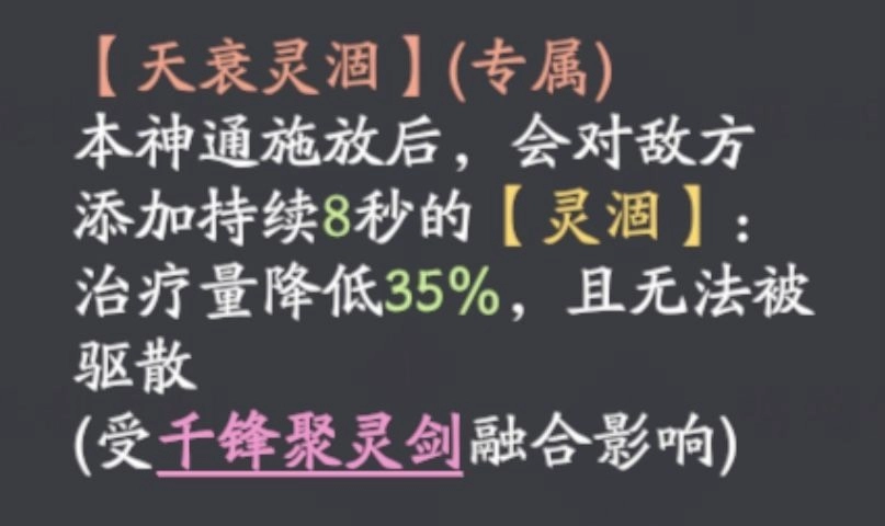 ● 【聚靈】機制:施放神通前每生成一道劍氣,為目標(biāo)疊加220%攻擊力的傷害,上限1100%,神通釋放后重置計數(shù)