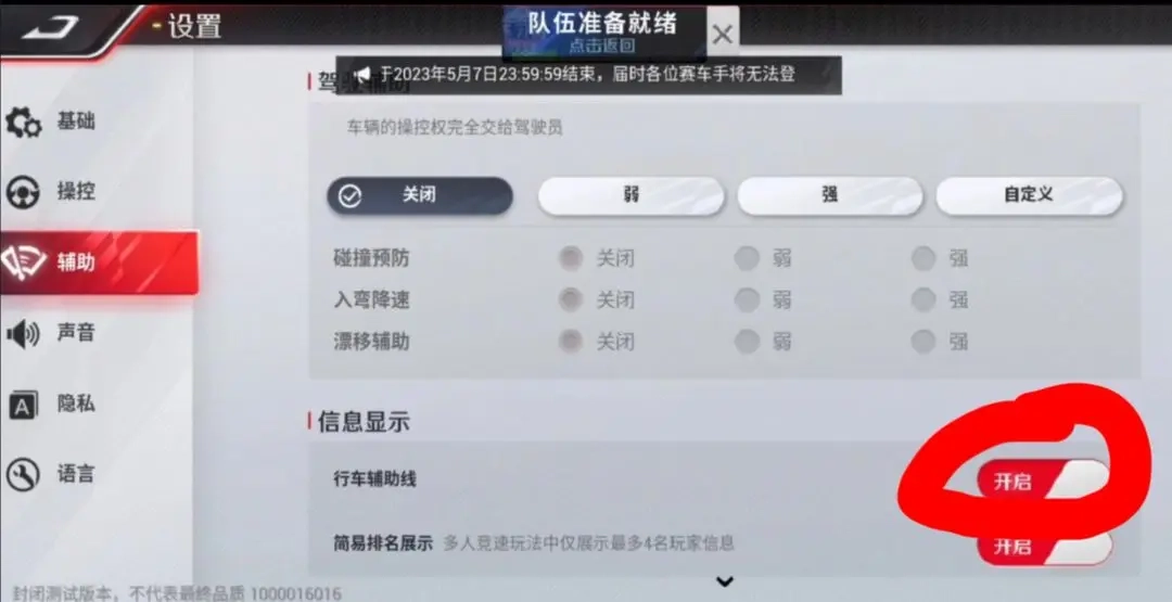 開啟漂移導(dǎo)航線和彎道指示標(biāo)這兩項(xiàng)功能,能幫助新手更好地找到入彎的感覺,尤其是對(duì)“外內(nèi)外”過(guò)彎技巧不太熟悉的新手玩家。