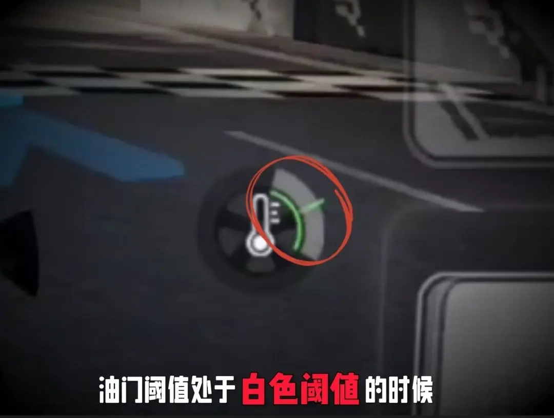 在起步倒計(jì)時(shí)結(jié)束前,剎車上方會(huì)出現(xiàn)一個(gè)油門閾值圈,適度點(diǎn)擊油門時(shí),指針會(huì)在白色閾值范圍內(nèi)擺動(dòng);當(dāng)?shù)褂?jì)時(shí)結(jié)束的瞬間,若指針正處于白色閾值內(nèi),即可觸發(fā)「完美起步」效果。