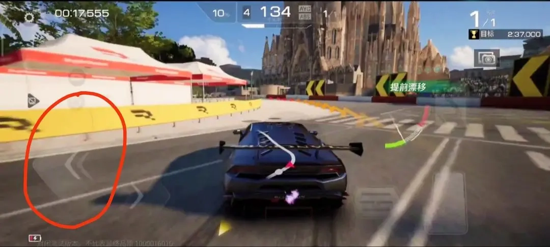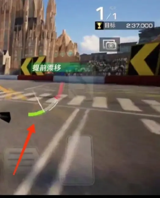 在熟悉了前面的基礎(chǔ)操作后,我們?cè)邳c(diǎn)擊手剎進(jìn)行起漂時(shí),要特別留意對(duì)[漂移角]的把控——它直接影響漂移能否順利完成。只要把指針控制在綠色閾值范圍內(nèi),我們就能平穩(wěn)地通過(guò)彎道了。