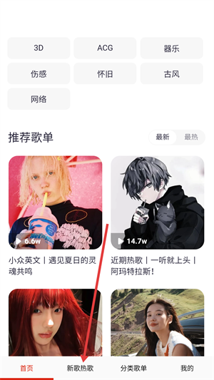 1、在首頁底部找到并點擊【新歌熱歌】按鈕,進入新歌熱歌界面查看最新歌曲。