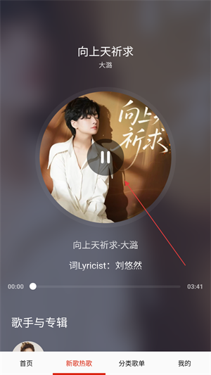 4、在播放界面中,可以通過中間的【播放/暫停按鈕】來控制音樂播放,輕松享受聽歌體驗。