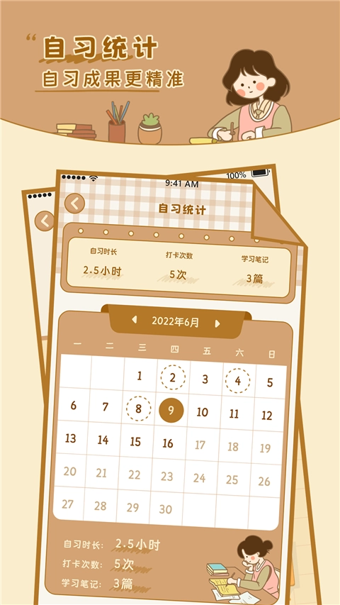 -自習(xí)記錄統(tǒng)計(jì):可對(duì)您在本應(yīng)用中添加的自習(xí)記錄進(jìn)行統(tǒng)計(jì),涵蓋自習(xí)日期、打卡內(nèi)容與筆記內(nèi)容,過(guò)往自習(xí)過(guò)程清晰呈現(xiàn),讓您一目了然。