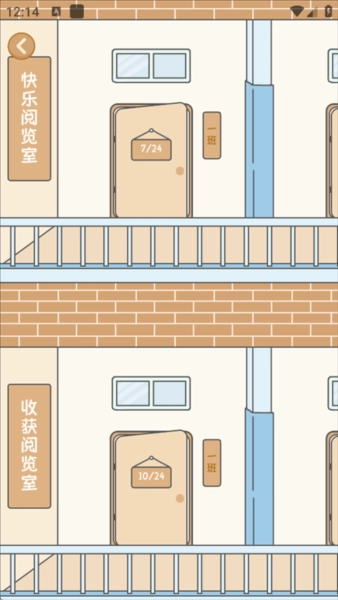 以圖書(shū)館場(chǎng)景為例,進(jìn)入后會(huì)劃分出書(shū)香、快樂(lè)、收獲、成長(zhǎng)、進(jìn)步五個(gè)閱覽室