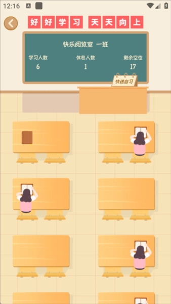班級(jí)中有許多座位,用戶選擇空位坐下即可