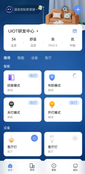 超級智慧家,也就是大家常說的UIOT,是一款能提供智能家居服務(wù)的實(shí)用工具。借助它,你可以隨時(shí)隨地用手機(jī)操控家里的智能設(shè)備,還能根據(jù)自己在不同時(shí)間、位置、天氣等場景下的使用習(xí)慣,定制專屬的智能場景模式。只需一鍵操作,就能讓多個(gè)設(shè)備協(xié)同聯(lián)動(dòng),既能為你省去不少麻煩,又能讓你輕松享受便捷舒適的生活。