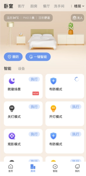 切換房間界面,可以點(diǎn)擊執(zhí)行自己設(shè)定的智能場景。