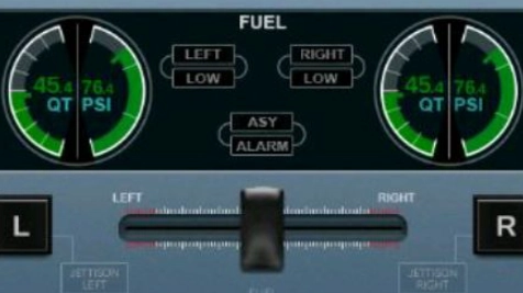 油量表的橫桿用于調(diào)節(jié)兩側(cè)油箱的油量,PSL代表油箱內(nèi)壓,若出現(xiàn)失壓現(xiàn)象,初步可判斷為油箱油量不足或存在漏油情況。當(dāng)兩側(cè)油箱重力失衡時(shí),ASY會(huì)發(fā)出警報(bào)。