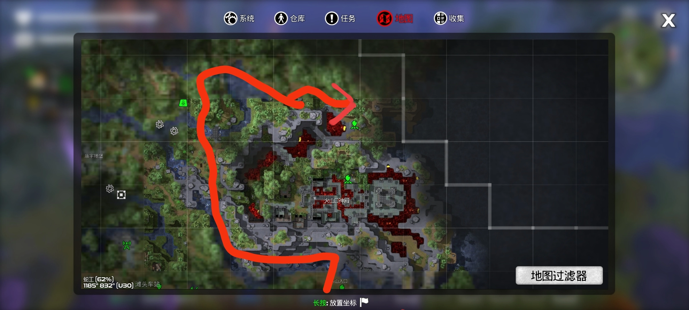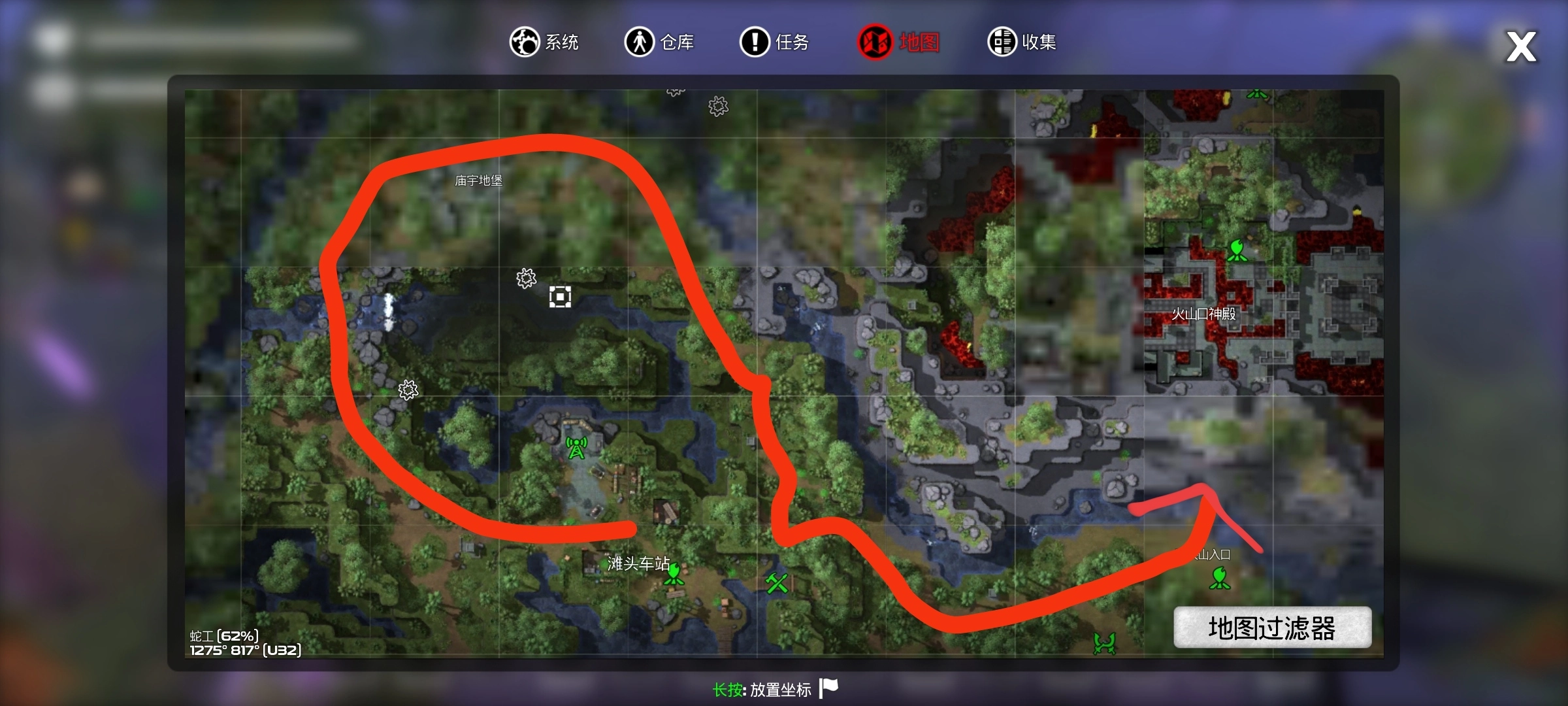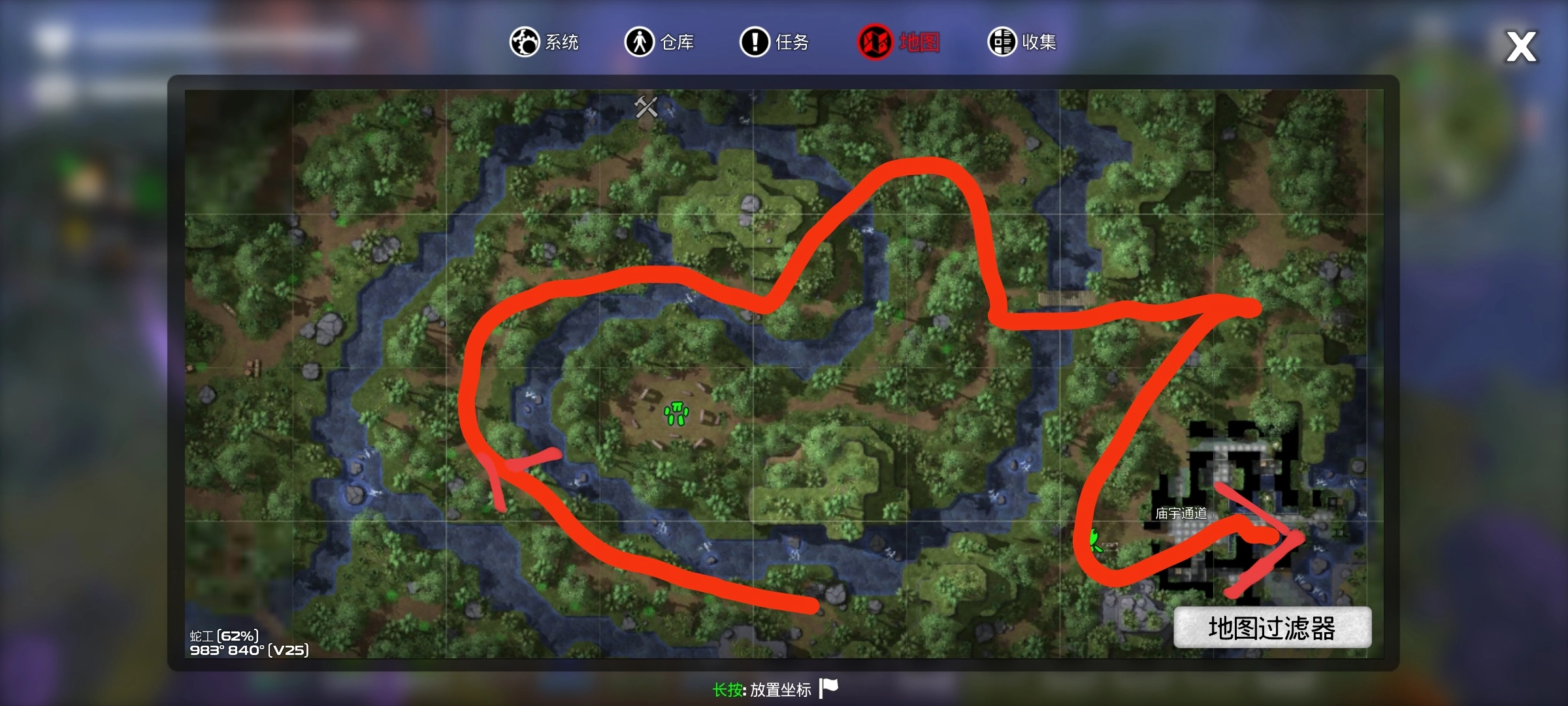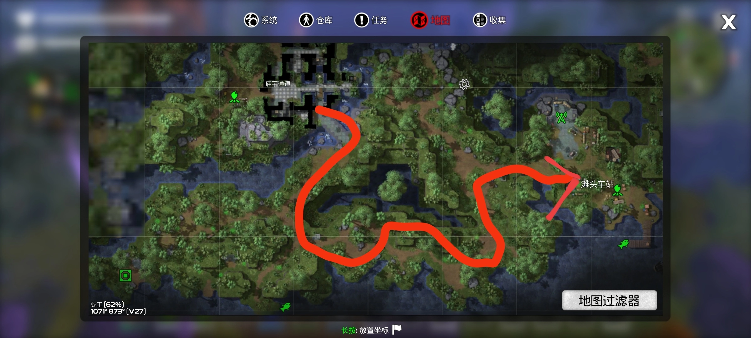 點亮營火后,主線任務要求前往撤離現(xiàn)場,對應的路線圖如下所示。這個任務常常會讓新手感到頭疼,主要是因為他們?nèi)菀渍也坏秸_的路徑。