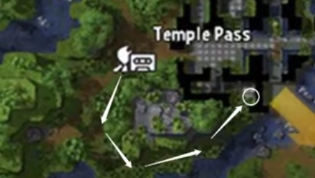 3、按照下圖的路線,沿著河邊走,可以看到一個拉桿,啟動拉桿,廟宇通道的門就開了;