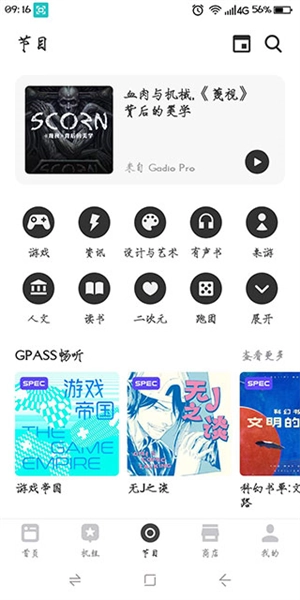 節(jié)目涵蓋游戲、資訊、設(shè)計與藝術(shù)、有聲書、桌游、社交、讀書等特色欄目。