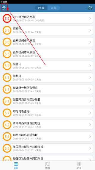 點擊定位圖標后,系統(tǒng)會自動識別您當前的位置,并展示周邊的地震相關信息。