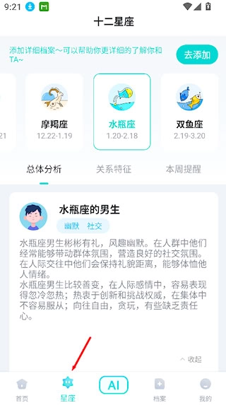 隨后將進(jìn)入該星座的主頁(yè),看到基礎(chǔ)的性格特征概述。