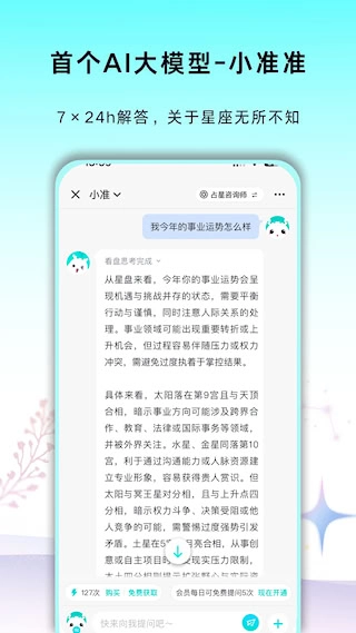 集成智能問(wèn)答系統(tǒng)與真人專家咨詢的雙重服務(wù)路徑。用戶既能隨時(shí)提交個(gè)性化問(wèn)題,獲取由算法生成的專屬解讀;也可預(yù)約專業(yè)占星師,開展深度一對(duì)一交流,以此滿足不同層次的咨詢需求。