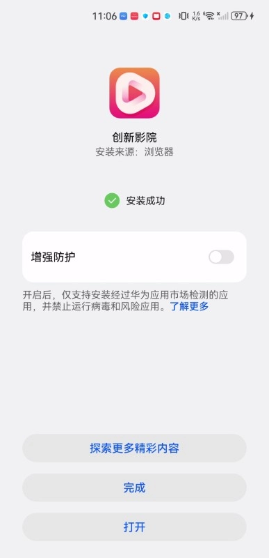 最終頁面顯示“安裝成功”的提示后,點擊界面下方的打開按鈕,就能開啟精彩內(nèi)容的體驗之旅。