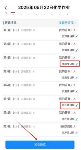 答題情況:這里會展示每道題的具體得分詳情,點擊對應(yīng)的題號,就能進(jìn)入該題頁面,查看相應(yīng)的答案與解析內(nèi)容。