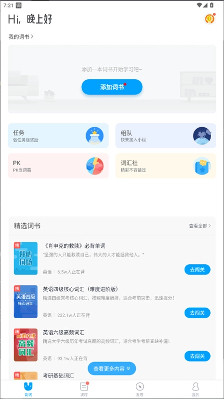 在滬江開心詞場里,你能享受邊玩邊記的學(xué)習(xí)樂趣,還能體驗離線背單詞的便捷,讓自己隨時隨地沉浸在背單詞的氛圍中,一步步提升英語水平吧。