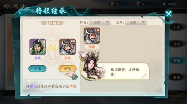 武將培養(yǎng)資源支持無損繼承。當(dāng)需要調(diào)整陣容時(shí),所有投入均可完整轉(zhuǎn)移至新武將,讓玩家能夠隨心嘗試不同陣容組合,徹底擺脫資源損耗的后顧之憂。