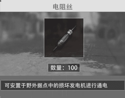 電阻絲:刷新于地點物資箱、補給箱、工具箱、軍火箱等各類箱子中。