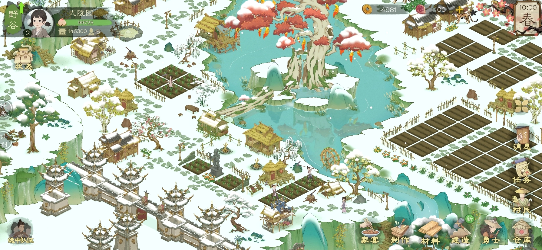 在《桃源記2》里,游戲設(shè)置了多種風(fēng)格迥異的地圖,其中包含河流、樹(shù)林等自然景觀。這些地圖采用了色彩更為豐富的山水畫(huà)風(fēng)格,整體畫(huà)面顯得更加自然,也更貼近現(xiàn)實(shí)。玩家能夠自由選擇不同的地圖來(lái)發(fā)展自己的聚落,通過(guò)收集農(nóng)作物、建立商貿(mào)關(guān)系等方式進(jìn)行交易,推動(dòng)聚落的繁榮。
