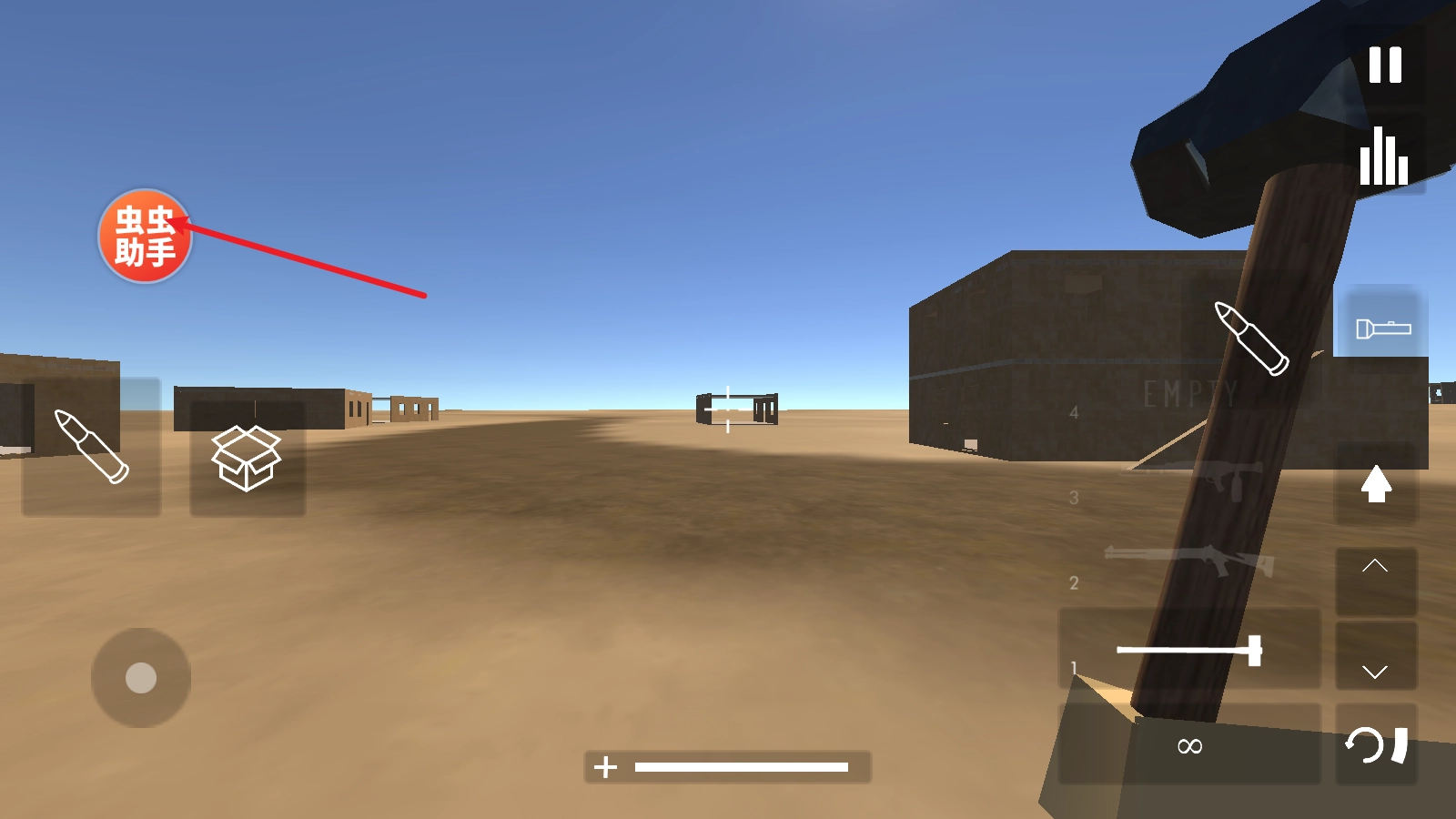 進(jìn)入后,用左側(cè)的搖桿來控制移動,右側(cè)的武器點擊就能切換,上方的子彈用于攻擊。
