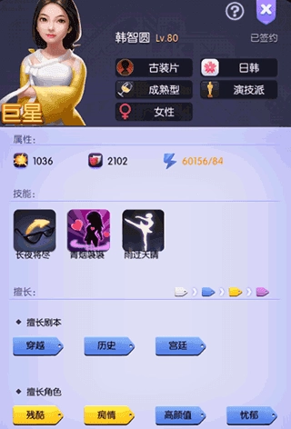 這位藝人的1技能適配“古裝劇”類型,2技能則適配“戰(zhàn)爭劇”題材。