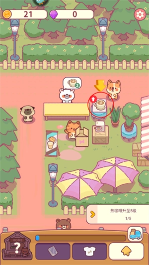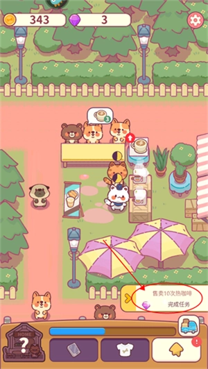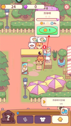 點(diǎn)擊任務(wù)就能看到完成任務(wù)的操作提示,比如要升級(jí)熱咖啡,只需點(diǎn)擊咖啡旁邊的升級(jí)按鈕即可。
