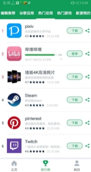 操作完成后,點(diǎn)擊排行榜→熱門(mén)應(yīng)用,找到排名第二的Bilibili。