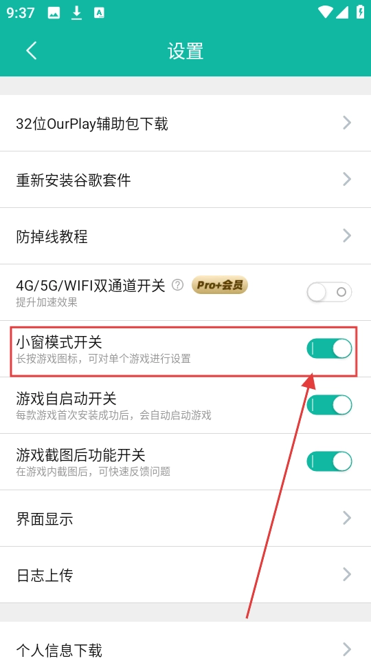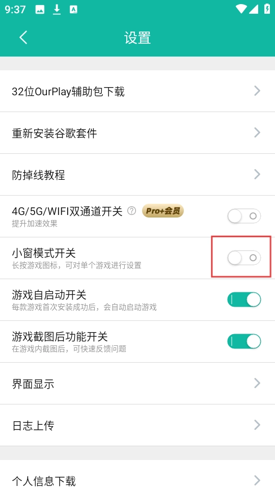在設(shè)置頁(yè)面里,能找到【小窗模式開(kāi)關(guān)】,點(diǎn)擊這個(gè)開(kāi)關(guān)就可以開(kāi)啟小窗模式了。