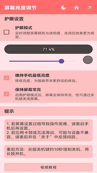 它的亮度調(diào)節(jié)范圍比系統(tǒng)自帶功能大得多,能在非?;璋档沫h(huán)境里把背光調(diào)到幾乎關(guān)閉的程度。這種可以細(xì)致調(diào)節(jié)的能力,對(duì)于夜間看書或者給嬰兒喂奶這類需要微弱光線的場(chǎng)景來說特別合適,能防止強(qiáng)光帶來的刺激。