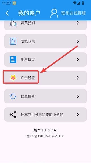 下拉找到并點(diǎn)擊【廣告設(shè)置】