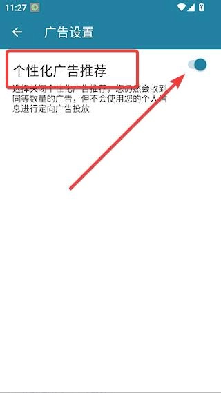 點(diǎn)擊【個(gè)性化廣告推薦】后面的開關(guān)