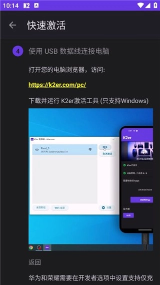 接下來(lái)請(qǐng)前往https://k2er.wasd.plus/pc/k2er激活工具頁(yè)面完成連接操作。