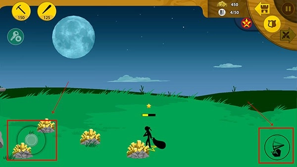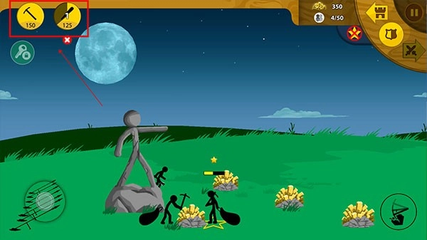 點擊右上方,可以創(chuàng)造專門挖礦和進攻的士兵;