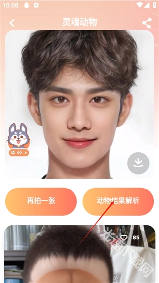 拍攝完成后,系統(tǒng)會(huì)自動(dòng)識(shí)別并調(diào)整形象,讓照片變成帶有個(gè)人特色的小動(dòng)物,要是想保存的話,點(diǎn)擊右下角的按鈕就行。