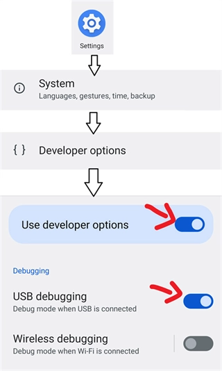 啟用“開發(fā)者選項(xiàng)”和“USB 調(diào)試”