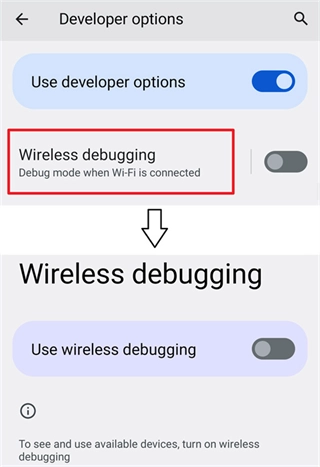 無線調(diào)試的啟動(dòng)方式適用于Android 11及更高版本,該方式無需連接電腦。不過受系統(tǒng)限制,設(shè)備每次重啟后都得重新執(zhí)行啟動(dòng)流程。