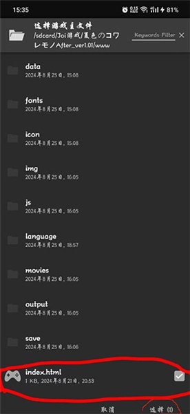 請(qǐng)注意:找到文件夾里的www文件夾,打開(kāi)該文件夾后,挑選后綴是HTML的游戲進(jìn)行添加,通常左邊會(huì)顯示游戲手柄圖標(biāo),點(diǎn)擊右下角的“選擇添加”按鈕就可以了。