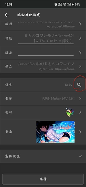 通常情況下,此時(shí)應(yīng)該已經(jīng)加載完成了。不過(guò)有時(shí)語(yǔ)言選擇框里可能沒(méi)有選中剛才添加的翻譯語(yǔ)言,這時(shí)候你可以點(diǎn)擊圖中所指的區(qū)域,接著在彈出的窗口里找到并選擇你剛添加的翻譯文件,最后點(diǎn)擊底部的“編輯”按鈕退出就可以了。