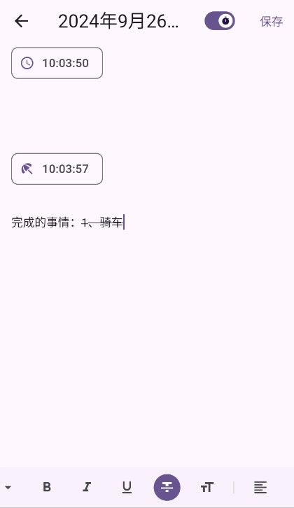 可以選擇日記時間,首頁的日記同樣按日期排列,因此這款軟件也能當作提醒工具使用。每次打開它,就能讓自己的待辦事項更不容易被遺漏。
