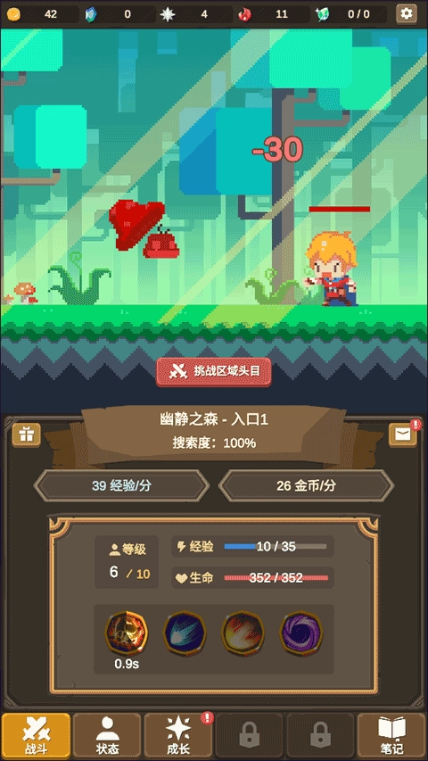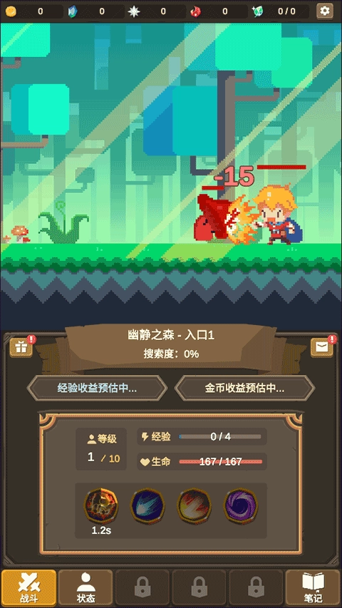 這里需要玩家先熟悉一下操作界面,玩家所扮演的角色會自動戰(zhàn)斗,玩家的任務很簡單,只需專注于培養(yǎng)角色成長就行。