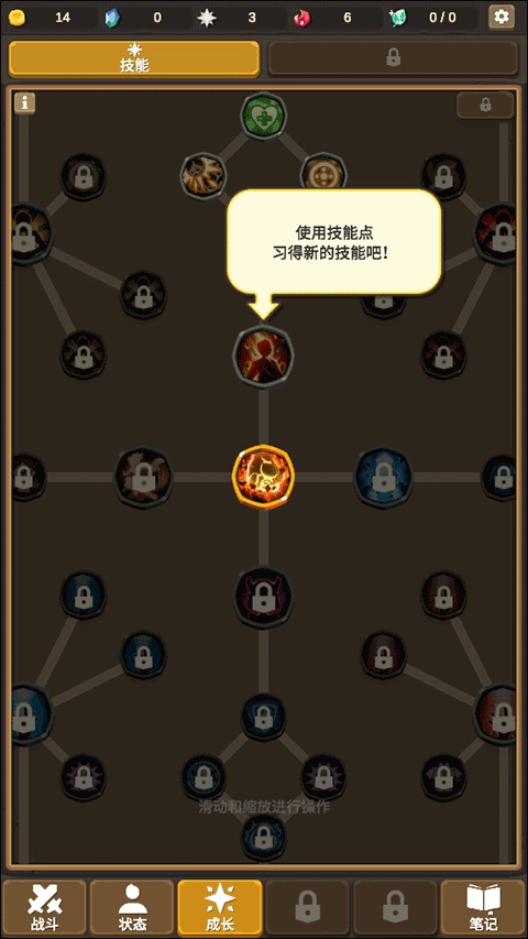①開局選波波炮,出門后一直往右走,把后面那兩個50%的增益拿了,優(yōu)先往右上方向推進,技能點先點出貧血加防御和減少冷卻的效果,這樣基本就差不多了。要是你還想繼續(xù)掛機不轉(zhuǎn)世,也可以接著點左邊的技能。