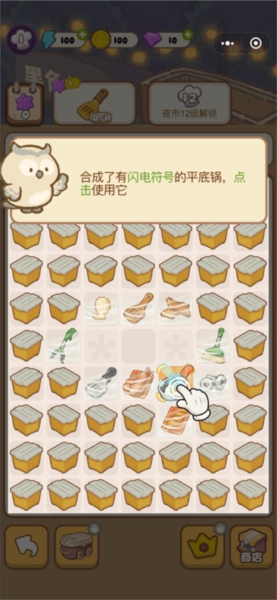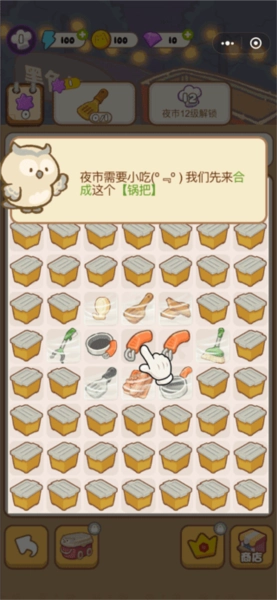 夜市經(jīng)營離不開小吃,點(diǎn)擊相同的道具,就能合成出經(jīng)營夜市時需要用到的各類材料與設(shè)施。
