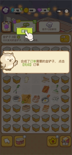 把食材和廚具合成更高級的商品,提交訂單就能獲取星星與金幣,這些可以用來解鎖新的攤位。
