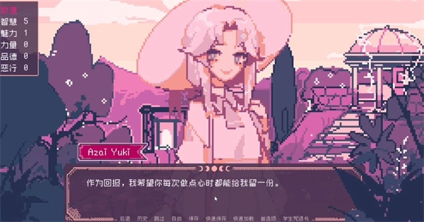 第一次互動(dòng)發(fā)生在課堂上,靠近她時(shí),對(duì)話選項(xiàng)可以任意選擇,不會(huì)對(duì)好感度產(chǎn)生影響。